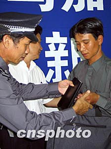 他介紹說自從公安部三月二日發(fā)布有關(guān)馬加爵的通緝令后,他始終留意這個信息。三月十五日晚七時左右他騎摩托車經(jīng)過三亞河西岸,前往第一市場買菜。發(fā)現(xiàn)路邊有一男子在路邊垃圾桶翻撿別人丟棄的食物和飲料,他覺得此人相貌與通緝令上的照片非常想像,他立刻與到處都粘貼的通緝令對照,認為比較確定。在與馬犯對視的過程中,他還發(fā)現(xiàn)此人在裝瘋并且走路一瘸一拐。他立刻騎摩托前往三亞河西派出所報案。