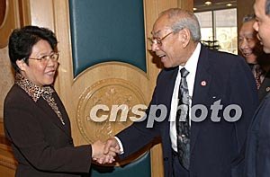 中新社北京四月二日電(記者 邢利宇)中國(guó)國(guó)務(wù)院僑務(wù)辦公室主任陳玉杰今天下午在此間會(huì)見(jiàn)了以梅惠照為團(tuán)長(zhǎng)的美國(guó)安良工商會(huì)訪問(wèn)團(tuán)一行十余人。