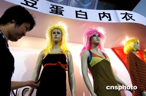 初秋的北京,國內(nèi)外七十多家內(nèi)衣生產(chǎn)廠商齊聚國際展覽中心,參加“中國國際內(nèi)衣博覽會(huì)”,他們或從外觀展示時(shí)尚美麗,或從內(nèi)質(zhì)強(qiáng)調(diào)親膚舒適。北京一家內(nèi)衣商展示大豆蛋白纖維內(nèi)衣,據(jù)知,中國擁有大豆蛋白纖維新技術(shù)的自主知識(shí)產(chǎn)權(quán)。中新社記者:王麗南