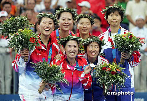 在先進(jìn)行的銅牌爭(zhēng)奪戰(zhàn)中,中國(guó)球員魏軼力/趙婷婷負(fù)于韓國(guó)球員羅景民/李敬元。中國(guó)隊(duì)沒(méi)能象上屆奧運(yùn)會(huì)一樣讓三面五星紅旗在女雙領(lǐng)獎(jiǎng)臺(tái)上同時(shí)升起。