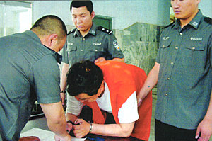 據(jù)韓回憶,當(dāng)天上午9時左右,突然有十幾輛貨車停在公司門口,從車上跳下十幾名警察,持槍把住大門兩邊,不準(zhǔn)公司人員進(jìn)出。接著一輛超長的黃色大客車開到院子里停下,從車上下來100多名身著灰色囚服的犯人。