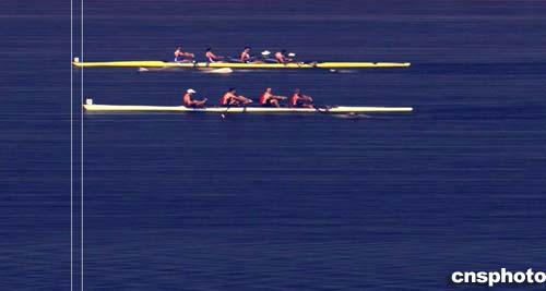 在當(dāng)?shù)貢r(shí)間21舉行的賽艇男子四人艇比賽中,英國(guó)隊(duì)?wèi){借微弱的優(yōu)勢(shì)戰(zhàn)勝加拿大,贏得該項(xiàng)目的冠軍。