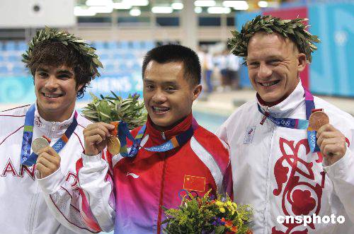 中新社雅典八月二十四日電 今晚剛剛結(jié)束的雅典奧運(yùn)會(huì)跳水男子三米板決賽中,中國(guó)選手彭勃憑借出色發(fā)揮,擊敗了包括俄羅斯老將薩烏丁、加拿大的德斯帕蒂、俄羅斯的多布羅斯克以及日本的寺內(nèi)健在內(nèi)的眾多強(qiáng)手,以七百八十七點(diǎn)三八的總分奪得冠軍,為中國(guó)跳水隊(duì)贏得了第四枚雅典奧運(yùn)會(huì)金牌,這也是中國(guó)代表團(tuán)在本屆奧運(yùn)會(huì)上的第二十四枚金牌。