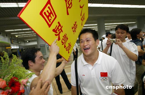 8月26日,北京首都國際機(jī)場又迎來一批載譽(yù)歸來的奧運(yùn)健兒,包括羽毛球、乒乓球、游泳、體操、舉重等200多名選手,他們在機(jī)場受到英雄般的歡迎,幾乎每個(gè)人都被鮮花包圍。中新社記者:盛佳鵬