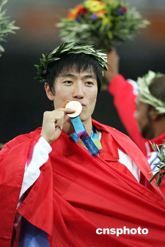 劉翔在雅典奧運(yùn)會(huì)上奪得一百一十米欄金牌,這是亞洲人在奧運(yùn)會(huì)男子跨欄項(xiàng)目有史以來的第一塊金牌,這一天也是中國田徑實(shí)現(xiàn)歷史性突破的一天。同時(shí),他打破長期由黑人和白人選手在短距離徑賽項(xiàng)目上的壟斷,也為亞洲人揚(yáng)眉吐氣。難怪有美國媒體奧運(yùn)會(huì)前就大膽預(yù)測:劉翔是繼效力于NBA休斯敦火箭隊(duì)的姚明之后,中國又一個(gè)最受歡迎的運(yùn)動(dòng)員。