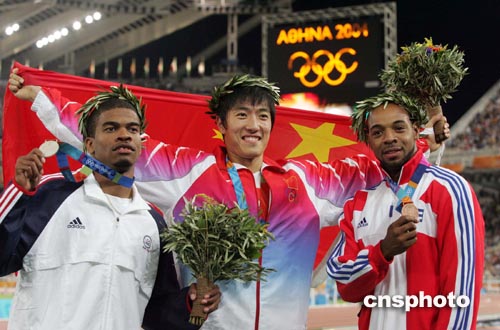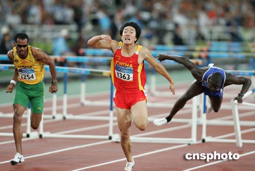 當(dāng)?shù)貢r間八月二十七日晚,在雅典奧運會男子一百一十米欄比賽中,中國選手劉翔以十二秒九一的成績獲得冠軍并打破奧運會紀(jì)錄。中新社記者:毛建軍