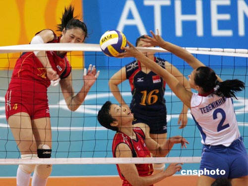 當(dāng)?shù)貢r間八月二十八晚,中國女排在雅典奧運(yùn)會女排決賽中先失兩局的情況下,連扳三局,最終以三比二戰(zhàn)勝俄羅斯隊(duì)而獲得冠軍。中新社記者:毛建軍