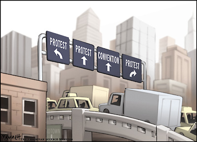 這次示威游行匯聚了來自各行各業(yè)的人,包括越戰(zhàn)老兵,伊拉克陣亡士兵的家屬以及女權(quán)活動(dòng)分子等,他們紛紛涌向紐約曼哈頓。(來源:基督教科學(xué)箴言報(bào))