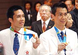 為歡迎香港奧運(yùn)代表,香港政府特別于8月31日在尖沙嘴文化中心舉行正式的歡迎儀式,F(xiàn)場一早有數(shù)百名市民等候,熱烈歡迎奧運(yùn)代表及榮獲奧運(yùn)乒乓球男子雙打銀牌得主高禮澤、李靜。作者:洪少葵