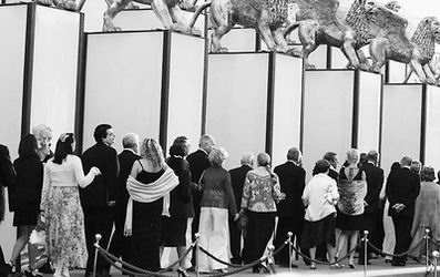 不知道從什么時(shí)候開始,歐洲電影節(jié)和罷工游行就像孿生兄弟一樣,形影不離。本屆威尼斯電影節(jié)也不能幸免。傍晚時(shí)分,在參展演員和導(dǎo)演下榻的威斯汀酒店外,一群統(tǒng)一著裝的人組成方隊(duì)圍在門口,他們每個(gè)人身上都掛著大紙牌,紙牌背面寫著:“威娜”危害身體健康,請(qǐng)禁止其生產(chǎn)。原來本屆電影節(jié)最大的贊助商之一就是世界知名美發(fā)廠商“威娜”。電影節(jié)開幕式開始,明星們走上紅地毯時(shí),還不斷有游行隊(duì)伍在周圍逡巡,不過,盡管是游行,他們的態(tài)度卻很平和,沉默寡言,絲毫沒有影響電影節(jié)開幕式的進(jìn)行。