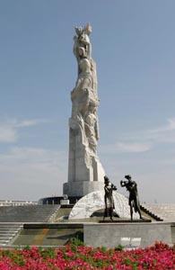 第七屆中國(guó)長(zhǎng)春國(guó)際雕塑作品邀請(qǐng)展今日長(zhǎng)春揭幕。圖為雕塑展的主題雕塑“和平·友誼·春天”。