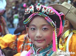 中國(guó)四川丹巴嘉絨藏族風(fēng)情節(jié)近日隆重舉行。在丹巴縣風(fēng)情節(jié)上來(lái)自聞名遐邇的“美人谷”的“美少女”。作者:張華