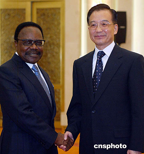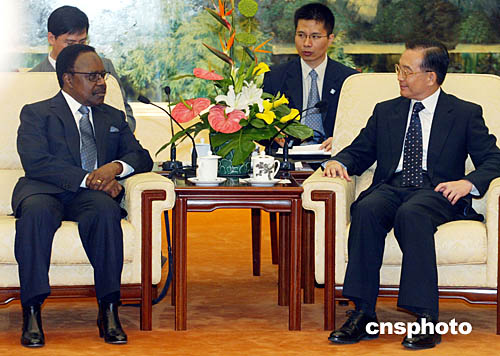 九月九日,中國國務院總理溫家寶在北京會見加蓬總統(tǒng)邦戈。中新社記者:鄭萍萍