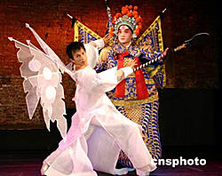 結(jié)合京劇《挑滑車》和現(xiàn)代舞的舞蹈《相遇》,即將由臺灣“風(fēng)之舞形”舞團(tuán)在臺北推出。舞蹈分上下兩段,由三位演員飾演兩個角色,分別展現(xiàn)宋代猛將高寵和一個現(xiàn)代普通男人在不同時空下激烈的內(nèi)心沖突。9月13日,該舞蹈在臺北市紅樓劇場與媒體見面。圖為高寵(右,劉稀榮飾)與其內(nèi)心角色(左,吳義芳飾)。中新社記者:黃少華