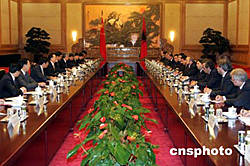 中新社北京九月十三日電(記者齊彬)中國(guó)總理溫家寶今天與來(lái)華進(jìn)行正式訪問(wèn)的阿爾巴尼亞總理納諾舉行會(huì)談,這是兩國(guó)總理三十八年來(lái)的首次會(huì)談。溫家寶就促進(jìn)兩國(guó)關(guān)系發(fā)展提出了三方面建議。