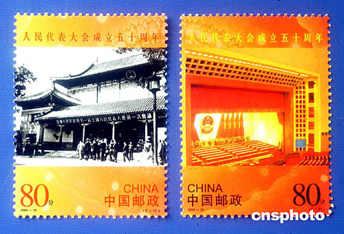 中新社北京九月十三日電中華人民共和國(guó)第一屆全國(guó)人民代表大會(huì)第一次會(huì)議于一九五四年九月十五日在北京召開。為紀(jì)念人民代表大會(huì)成立五十周年,中國(guó)國(guó)家郵政局定于二00四年九月十五日發(fā)行《人民代表大會(huì)成立五十周年》紀(jì)念郵票。