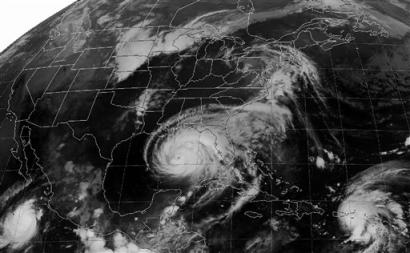 中新網(wǎng)9月15日電 據(jù)美聯(lián)社報(bào)道,颶風(fēng)“伊萬”即將登陸美國東南部沿海。當(dāng)?shù)卣φf服上百萬居民盡快疏散至安全地帶。圖為美國東部時間15日凌晨5點(diǎn)的衛(wèi)星云圖,圖片中央白色云圖即為“伊萬”颶風(fēng)。(固山)