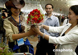 西藏自治區(qū)體育局、中國科學(xué)探險協(xié)會主辦的“珠穆朗瑪峰環(huán)保大行動”圓滿結(jié)束,十六日二十余名志愿者、新聞記者順利返回北京時,興高采烈地在首都機場合營留念,祝賀活動圓滿結(jié)束。中新社記者:宋吉河