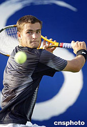 九月十八日,在北京網(wǎng)球中心中央球場進行的ATP男子單打半決賽中,俄羅斯選手尤茲尼以二比零戰(zhàn)勝泰國網(wǎng)球名將斯里查潘晉級決賽。中新社記者:盛佳鵬