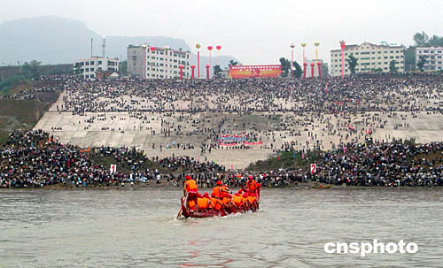 圖:三峽庫區(qū)舉行大規(guī)模龍舟競渡比賽