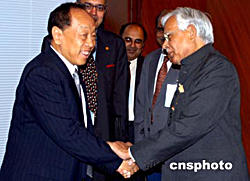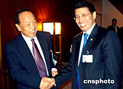 當?shù)貢r間九月二十八日,正在紐約聯(lián)合國總部出席第五十九屆聯(lián)大的中國外長李肇星(左),會見了聯(lián)合國名人小組成員。由聯(lián)合國秘書長安南提議建立的“威脅、挑戰(zhàn)與變革”高級別名人小組,專門負責研究聯(lián)合國的改革問題,并將于年底提出報告,供會員國審議。作者:趙海燕
