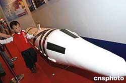 在展覽大廳最顯眼的位置擺放的是長征火箭的模型,正是長征火箭于2003年10月15日上午9點(diǎn)鐘將楊利偉送入太空,實(shí)現(xiàn)了中國人的千年飛天夢想。目前,長征系列火箭已先后進(jìn)行了76次發(fā)射,成功率達(dá)到90%以上,已成為中國國防科技事業(yè)蓬勃發(fā)展的象征。