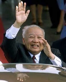 1970年3月18日,朗諾—施里瑪達(dá)集團(tuán)發(fā)動(dòng)軍事政變,西哈努克親王于當(dāng)月23日在北京宣布成立柬埔寨民族統(tǒng)一陣線并就任該陣線主席,領(lǐng)導(dǎo)民族解放斗爭(zhēng)。1974年4月17日,民族統(tǒng)一陣線在柬埔寨取得全面勝利后,就任民主柬埔寨國(guó)家主席。1976年4月辭去國(guó)家主席職務(wù)。1981年3月成立爭(zhēng)取柬埔寨獨(dú)立、中立、和平與合作民族團(tuán)結(jié)陣線,任主席至1989年8月。1982年7月9日出任民主柬埔寨主席并成為柬埔寨民族抵抗運(yùn)動(dòng)的領(lǐng)袖。1991年7月16日宣布辭去上述職務(wù),7月17日被推舉為柬埔寨全國(guó)最高委員會(huì)主席。同年10月23日率柬埔寨全國(guó)最高委員會(huì)全體成員出席巴黎會(huì)議,參加簽署“關(guān)于全面政治解決柬埔寨沖突的協(xié)定”。11月14日勝利返回金邊,被柬埔寨各方一致?lián)泶鳛閲?guó)家元首。1993年6月14日柬制憲會(huì)議通過決議,完全恢復(fù)西哈努克親王在1970年3月18日違憲政變前的一切權(quán)利和地位,并授其國(guó)家元首的所有權(quán)力。同年9月24日柬埔寨頒布新憲法,恢復(fù)君主立憲制。同日,王位委員會(huì)一致選舉西哈努克為國(guó)王、終身國(guó)家元首。