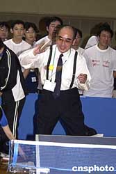 圖:昔日乒壇名將莊則棟?rùn)M濱再試身手