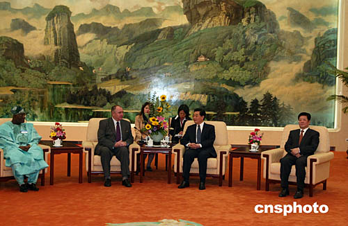 國家主席胡錦濤十月十一日在北京會見來華出席“經(jīng)濟(jì)全球化與工會國際論壇”的外國工會代表。全國人大常委會副委員長、中華全國總工會主席王兆國也參加會見。中新社記者:滿會喬