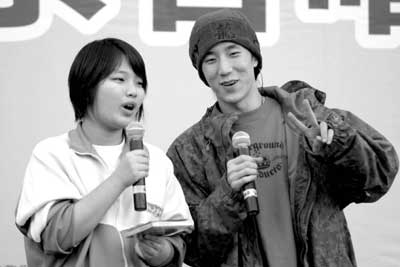 雖然昨天的北京并不是很冷,但是房祖名仍然是夸張地戴上了滑雪帽、穿著厚外套,他自己還有些羞澀地表示,本來是想脫掉外套,但又怕凍得彈不了吉他出丑。在一段自彈自唱的自我介紹后,現(xiàn)場的3000多名學(xué)生也跟著興奮了起來,一位女學(xué)生還自告奮勇地要與房祖名共同唱一曲,也許是沒見過這么多的照相機(jī)對著自己,女孩顯然是有些緊張,忘記了歌詞,但是更緊張的沒想到是房祖名,以至于弄得在臺(tái)上的兩個(gè)人都頻頻忘詞,整首歌也在斷斷續(xù)續(xù)中結(jié)束。