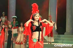 “斯達舒杯”第十屆中國模特之星大賽決賽第一場比賽于十月二十一日晚八點在廣西南寧拉開帷幕,二十二日晚進行了第二場比賽,產(chǎn)生了三十名選手進入二十四日晚舉行的總決賽。本次大賽陣容非常地強大,從今年三月份起星賽開始啟動,一共有五萬多名佳麗報名參賽,經(jīng)過二十二個分賽區(qū)初賽、復(fù)賽、決賽的層層選拔之后,一共產(chǎn)生了六十名選手參加在南寧舉行的決賽。圖為參賽選手展示少數(shù)民族服飾。作者:蔣雪林