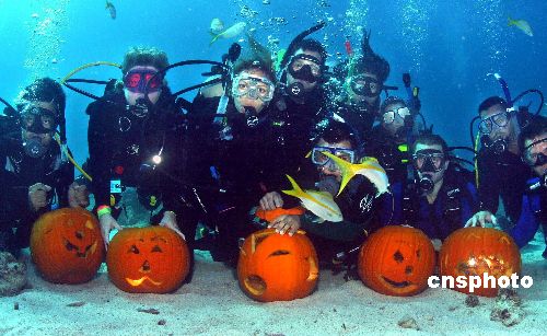10月25日,在美國佛羅里達州25英尺海底上演了一場別開生面的南瓜雕刻大賽,以此迎接即將到來的萬圣節(jié)。Ic/cnsphoto