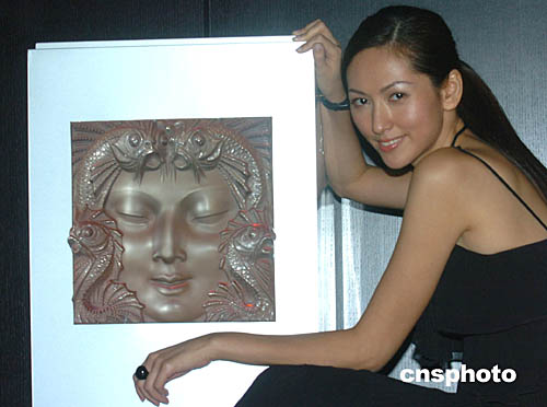 香港名模陳嘉容26日在香港中環(huán)演繹(LALIQUE)品牌水晶白色系列。