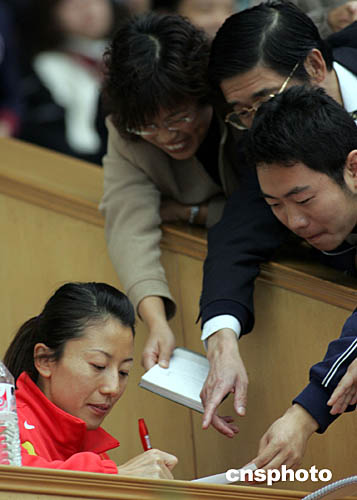 10月30日,2004/2005波司登國際滑聯(lián)短道速滑世界杯在北京首都體育館繼續(xù)舉行,為中國奪得首枚冬奧會金牌的楊揚亮相賽場,受到眾多冰上運動愛好者的追捧。中新社記者:武仲林