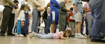 中新網(wǎng)11月3日電 據(jù)美聯(lián)社報道8歲的埃米利-馬歇爾正與他的父母在一起。其父母正在美國田納西州一投票站排隊參加總統(tǒng)投票。(春風(fēng))