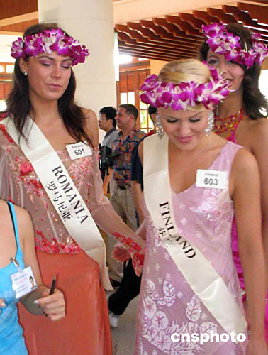 圖為天生麗質(zhì)、但顯得有點(diǎn)害羞的芬蘭小姐(右)和羅馬尼亞小姐。