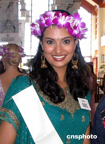 前來三亞參加第54屆世界小姐總決賽的澳大利亞小姐楚楚動(dòng)人,落落大方。
