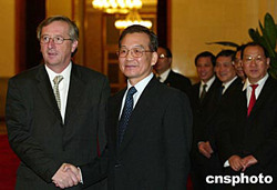 溫家寶說,中歐關(guān)系正在深入發(fā)展,政治交往十分密切,擴(kuò)大后的歐盟已成為中國最大的貿(mào)易伙伴,雙方在科技、文化等領(lǐng)域的合作也日趨深入。事實(shí)表明,中歐合作水平日益提高,鞏固和發(fā)展雙邊關(guān)系符合中歐的現(xiàn)實(shí)和長遠(yuǎn)利益。在當(dāng)前形勢下,中歐應(yīng)從戰(zhàn)略的高度著眼,不斷充實(shí)和發(fā)展中歐全面戰(zhàn)略伙伴關(guān)系,共同致力于世界的和平、穩(wěn)定與發(fā)展,溫家寶強(qiáng)調(diào),十二月上旬中歐將舉行第七次領(lǐng)導(dǎo)人會(huì)晤,中方希望這次會(huì)晤在推動(dòng)中歐關(guān)系發(fā)展方面取得新的積極進(jìn)展。
