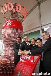 這一千億罐可口可樂依次排列等于二百四十座萬里長城;可以堆成十四萬個珠穆朗瑪峰;可以繞中國邊界五百二十六圈。今天,可口可樂重返中國二十五周年慶;顒釉谏虾B≈嘏e行,一千億罐的記錄對于可口可樂來說可謂非同尋常。