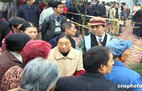 十九日清晨,在爆炸現(xiàn)場,幸存者肖述容(正面,女)被人圍住詢問爆炸發(fā)生時的情況。作者:鄒輝