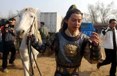 中新網(wǎng)11月22日電 據(jù)北京娛樂信報(bào)報(bào)道,昨(21)天,記者來到大興一荒郊樹林,采訪了正在那里拍攝四十集古裝荒誕劇《正德演義》的主持人何炅。該劇中他飾演明朝正德皇帝朱厚照,不過,讓記者怎么看怎么覺得他還是那個能說會道的名嘴。