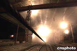 十一月二十四日凌晨,發(fā)生礦難的河北沙河金鼎鐵礦礦口煙霧騰騰,井下抽水機(jī)不間斷地抽水以尋找四名下落不明的礦工。由于井下積水太多,對(duì)人員的搜救工作目前尚不能正常進(jìn)行。截止當(dāng)日,此次礦難遇難礦工已達(dá)六十一人。作者:武仲林