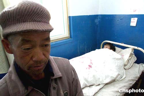 11月29日中午,一名在陜西銅川礦務局陳家山煤礦特大瓦斯爆炸事故中被搶救出井的重傷礦工,正在礦務局醫(yī)院接受治療。作者:任晨鳴