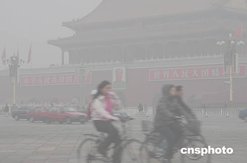 十二月二日清晨,北京天安門城樓和長安街籠罩在濃重的霧氣當中。北京連日來遭遇大霧天氣,首都機場眾多飛機航班延誤,京開、京沈、京津、京石等高速公路相繼關(guān)閉,城市道路能見度降低,交通事故明顯增多。中新社記者:毛建軍