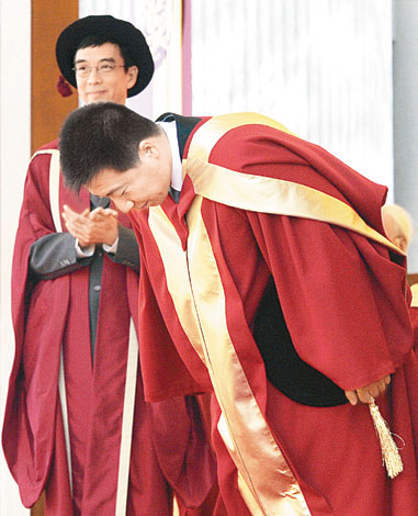 楊太太笑言,丈夫這次獲頒榮譽(yù)博士學(xué)位,自己沒有送上任何特別禮物,但當(dāng)記者在交談中以“楊博士”稱呼楊利偉時(shí),她聞言即露出燦爛的笑容,欣喜之情溢于言表。