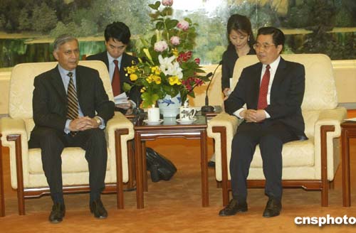 中新社北京十二月十六日電(記者齊彬)中國(guó)國(guó)家主席胡錦濤今天下午在會(huì)見(jiàn)巴基斯坦總理阿齊茲時(shí)表示,中方愿與巴方進(jìn)一步強(qiáng)化反恐合作,共同打擊地區(qū)“三股勢(shì)力”。
