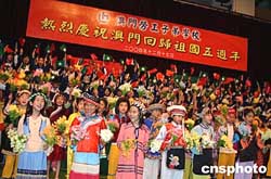 今天下午,澳門勞工子弟學(xué)校舉辦慶;貧w五周年活動(dòng)。奏國歌、民族舞蹈、武術(shù)與古箏表演、大合唱,活動(dòng)豐富多彩。潘建英、潘曼霞、牟琴三位嘉賓的出現(xiàn),贏得現(xiàn)場(chǎng)近千名師生的熱烈掌聲,更把活動(dòng)推向高潮。