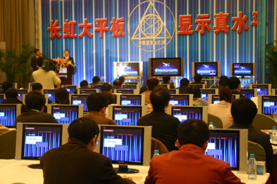 在此次發(fā)布會上,國家廣播電視產(chǎn)品監(jiān)督檢驗檢測中心發(fā)布《長虹平板電視綜合檢測報告》指出,長虹平板電視在清晰度、亮度、色度、對比度等綜合性能指標位列行業(yè)前茅。這表明,長虹“平板顯像金三角”所擁有的專有技術(shù)代表著平板顯像技術(shù)的發(fā)展趨勢。