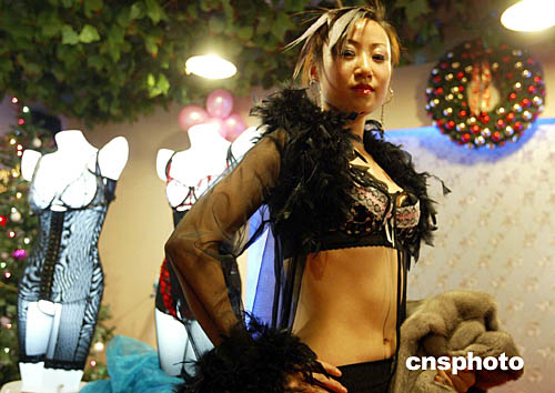 十二月二十五日圣誕節(jié),在北京寶兒金領生活館,一場別開生面的臺灣薇尼喬二零零五年新款內(nèi)衣秀為許多白領女性增添了生活樂趣。中新社記者:任海霞