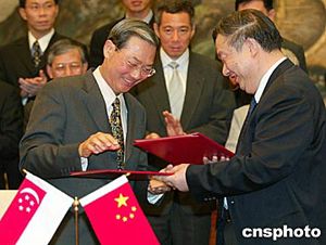中國國務(wù)院副總理吳儀與新加坡副總理李顯龍舉行會(huì)談。中新社記者:滿會(huì)喬